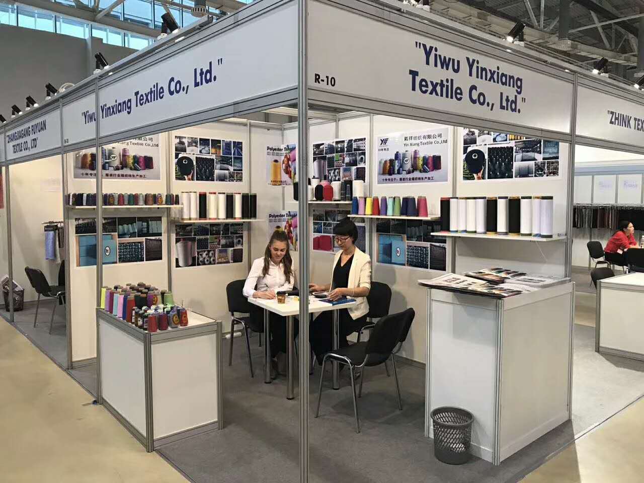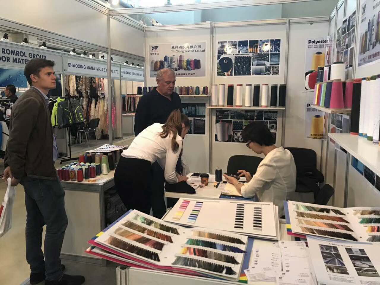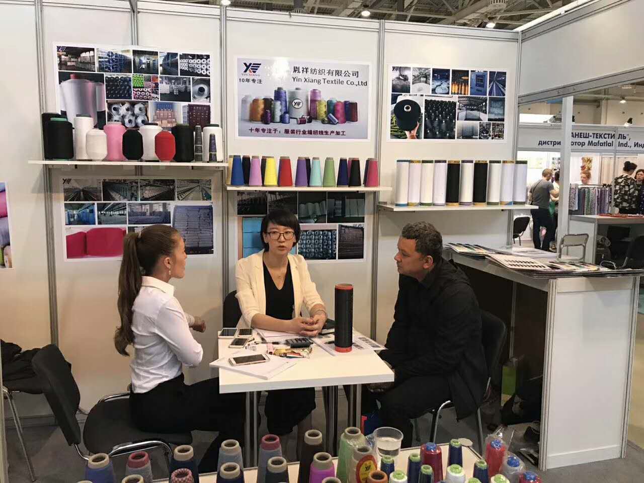 At this exhibition, the Yinxiang team brought various polyester sewing threads produced by the company: DTY, high-strength threads, single yarns, elastic threads, spandex-coated yarns, high-elasticity yarns, low-elasticity yarns and overwrapping yarns, as well as Complete color cards, company profile foldout, fully prepared. Under the introduction of the company Mr. Yan and Mr. Zhang, witnessing the quality of Yinxiang sewing thread, many Russian merchants placed orders on the spot, and the orders were transmitted to the country in real time. More than 2,000 domestic high-end modern machines in our company’s factory were immediately put into production. Professional The warehouse management team is also on call. It is no exaggeration to say that Yinxiang Textile is one of the most high-profile companies in Russia.